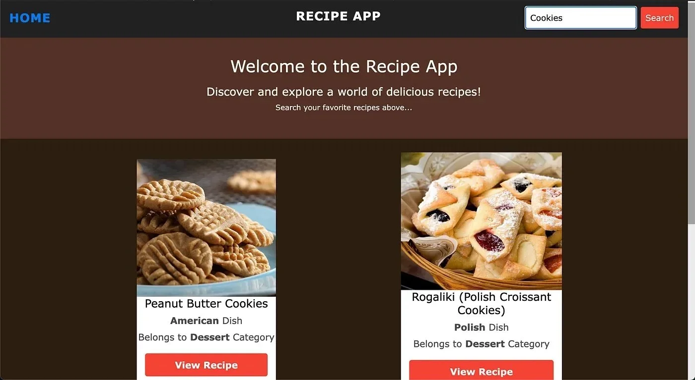 3. Integration of Dynamic Search Functionality: A key solution was the implementation of dynamic search functionality, seamlessly integrating with the selected API to provide users with instant access to a diverse range of recipes based on their preferences.