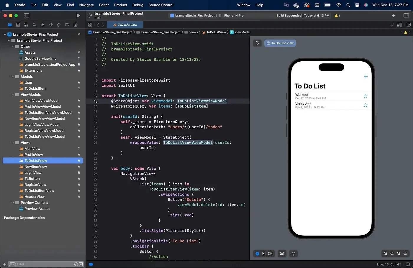 My application is a comprehensive to-do app developed using Xcode during the Fall of 2023. The project aimed to address the common challenge of time management by providing users with an efficient and user-friendly tool accessible on their mobile devices. Leveraging Xcode for development and integrating Google Firebase for analytics, the app offers a streamlined solution for users to organize tasks and boost productivity.
